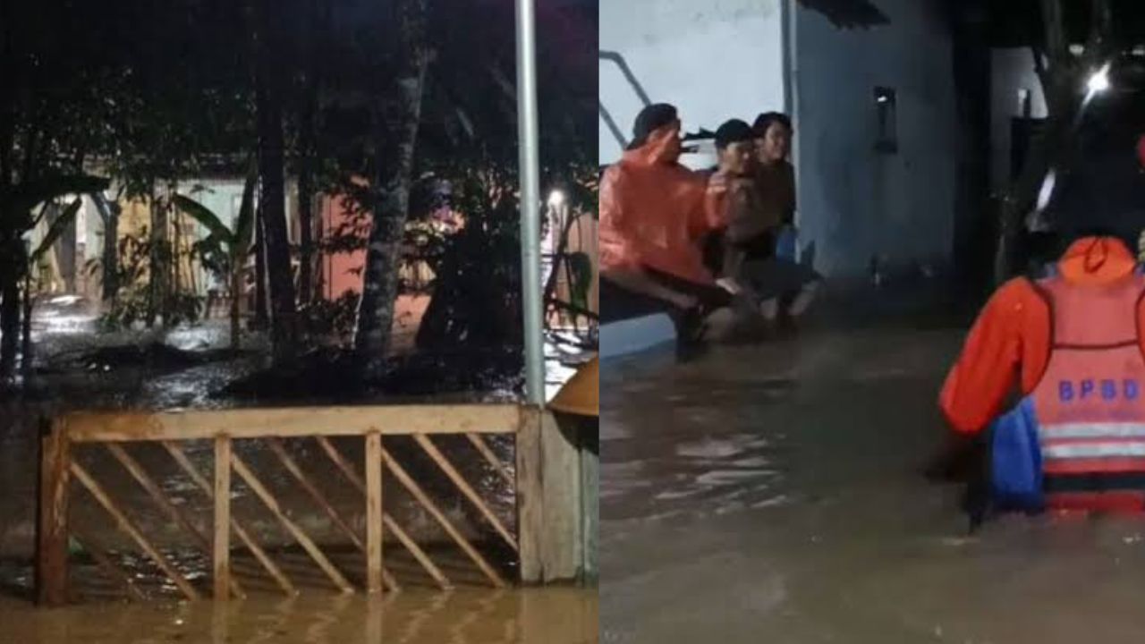 Sejumlah rumah warga juga ikut terdampak, memaksa tim SAR gabungan untuk bergerak cepat mengevakuasi warga menggunakan perahu karet.
