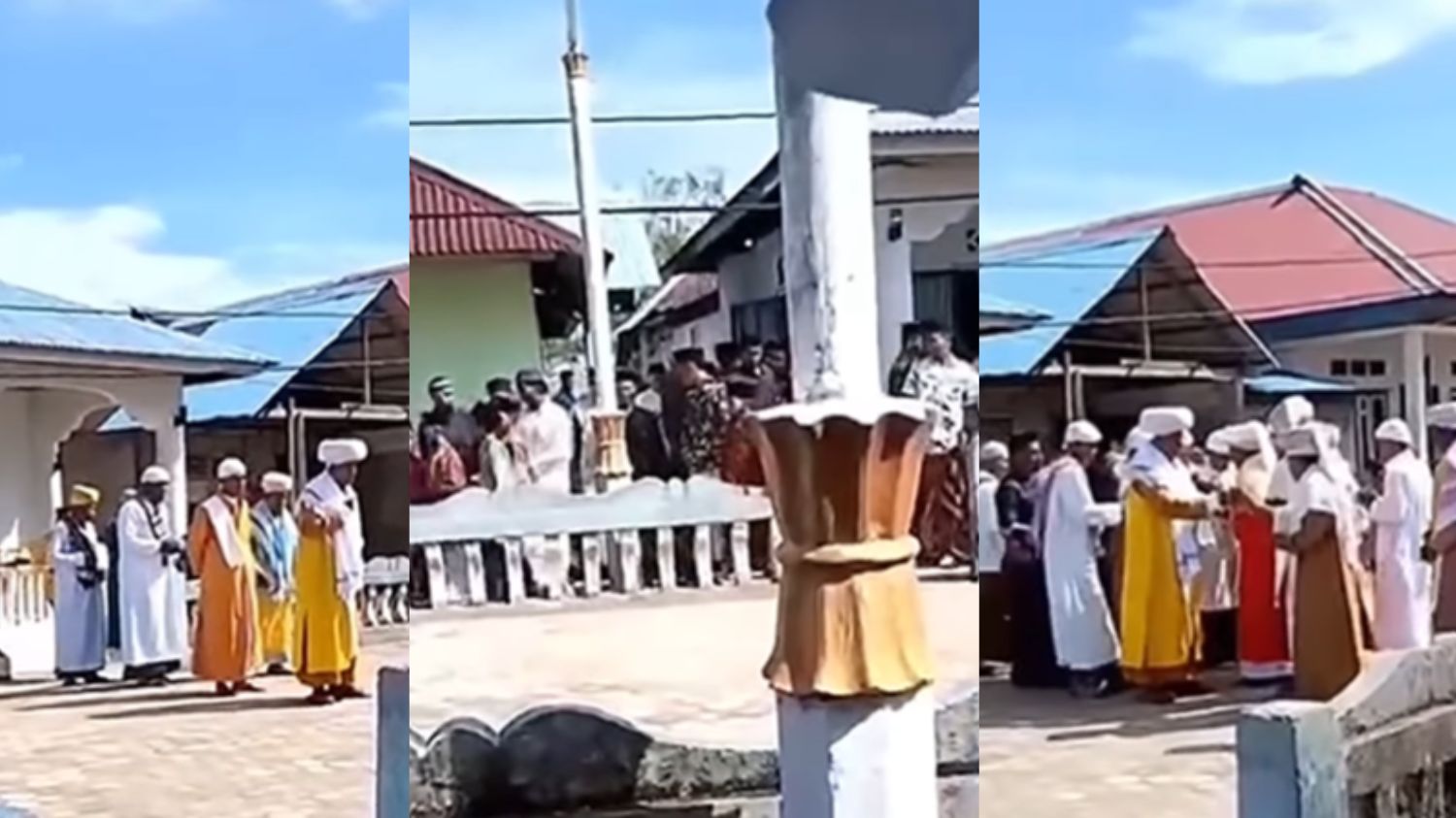 Dalam video viral itu tampak sejumlah tetua pengampu adat wilayah kampung itu keluar dari sebuah rumah, mereka menggunakan busana muslim yang dilengkapi dengan sorban.