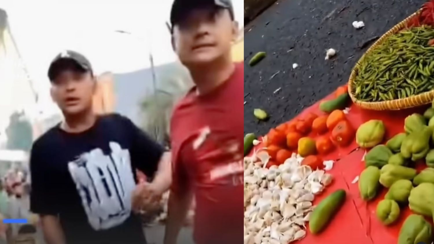Hal ini terlihat dari sebuah rekaman video yang menunjukkan salah satu pelaku yang memaksa pedagang menutup dagangannya, sementara satu pelaku lainnya nampak menendang sayuran pedagang.