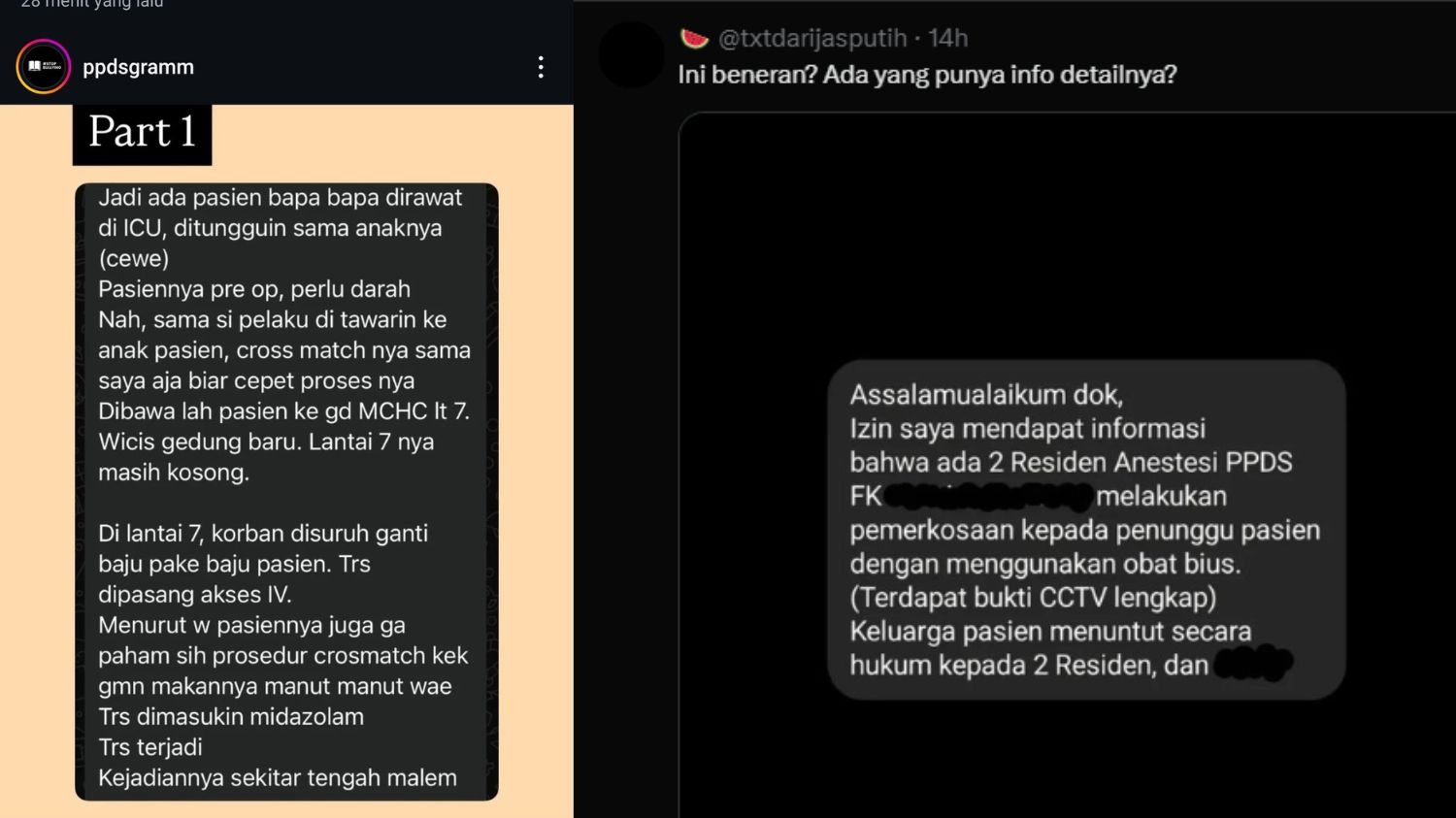 "Buat yang pengen tau kronologinya," tulis akun @ppdsgramm dalam unggahannya.