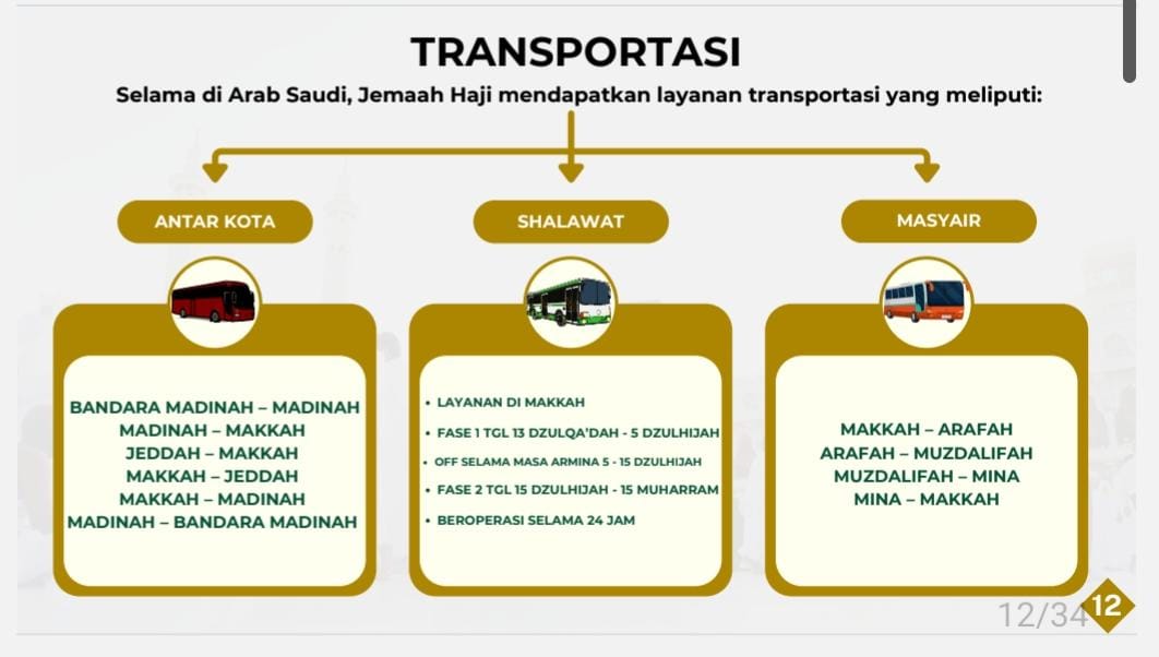 Kedua, terkait transportasi, Muchlis M Hanafi menjelaskan bahwa pihaknya menyediakan layanan di tiga area. Pertama, transportasi antarkota perhajian yang melayani rute Madinah – Makkah, Jeddah – Makkah, Makkah – Jeddah, dan Makkah – Madinah.