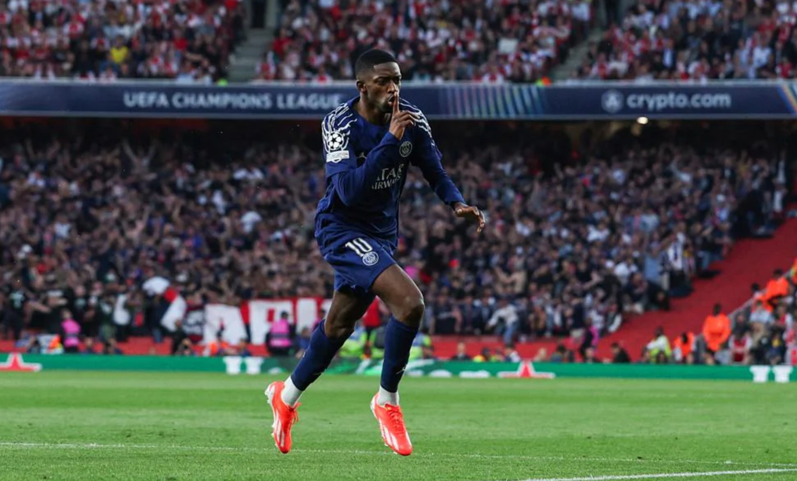 Dembele saat merayakan golnya ke gawang Arsenal-uefa.com-