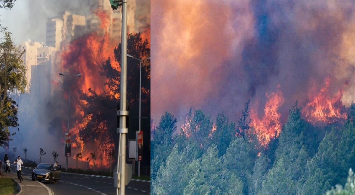 Diperparah oleh angin barat yang bertiup liar, kobaran api terus merambat ke arah pemukiman padat di pinggiran Yerusalem.