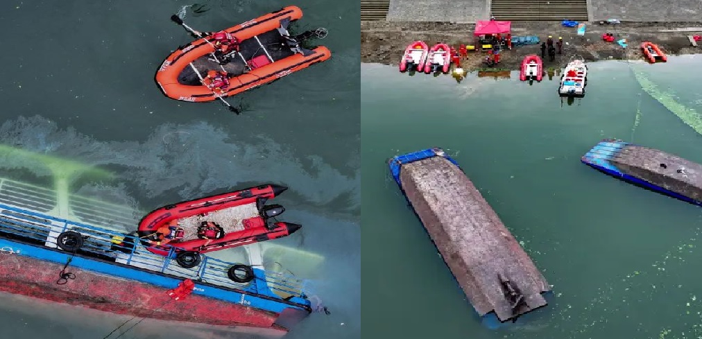 Dilansir dari media resmi China, CCTV dan Xinhua, empat kapal terbalik dalam insiden tragis tersebut.