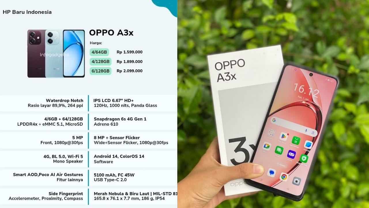 Oppo A3x merupakan pilihan tepat bagi kamu yang mencari smartphone entry level dengan desain premium, ketahanan tinggi, performa handal, dan fitur canggih.--Ig - infogadgetpro