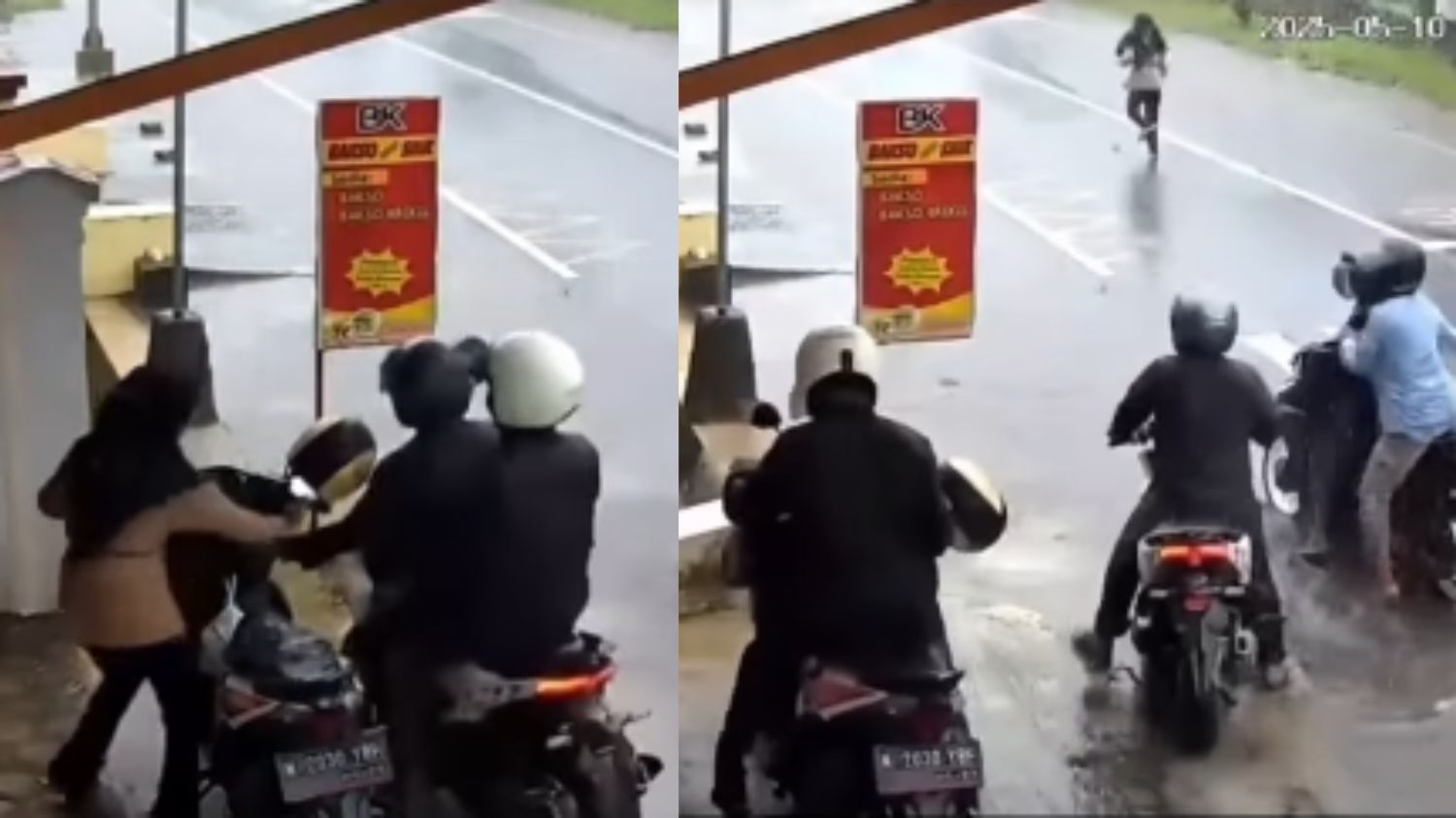 Viral Video Komplotan Pria Begal Motor Siswi SMK di Lumajang Saat Berteduh, Netizen: Gak Ada Orang yang Bantu?