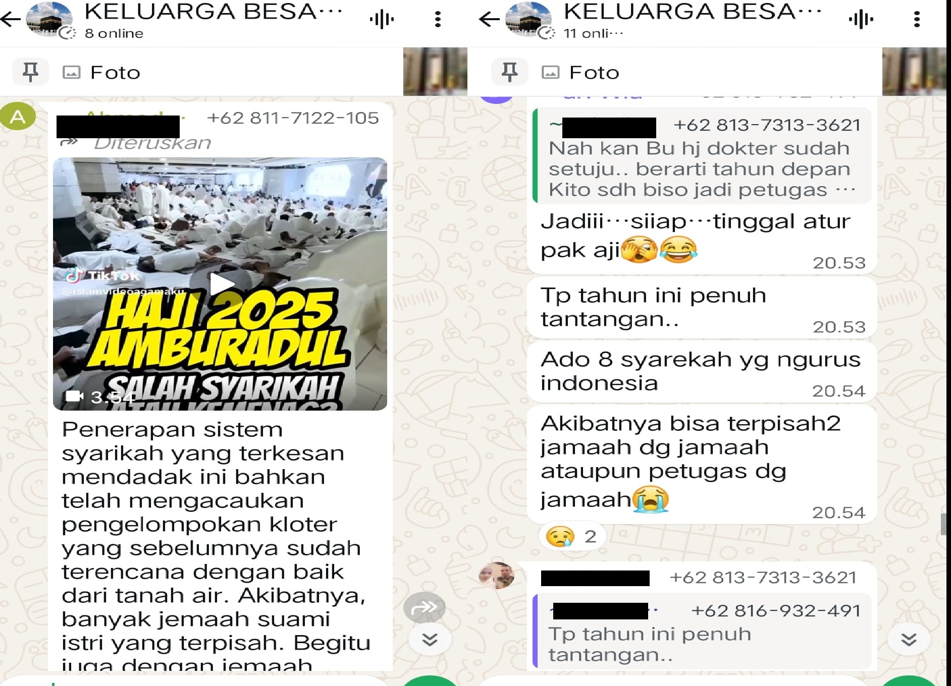Seorang petugas kesehatan kloter haji Embarkasi Palembang yang belum berangkat ke tanah suci, dalam grup whatsapp juga mengomentari pengelolaan oleh 8 syarikah tersebut.
