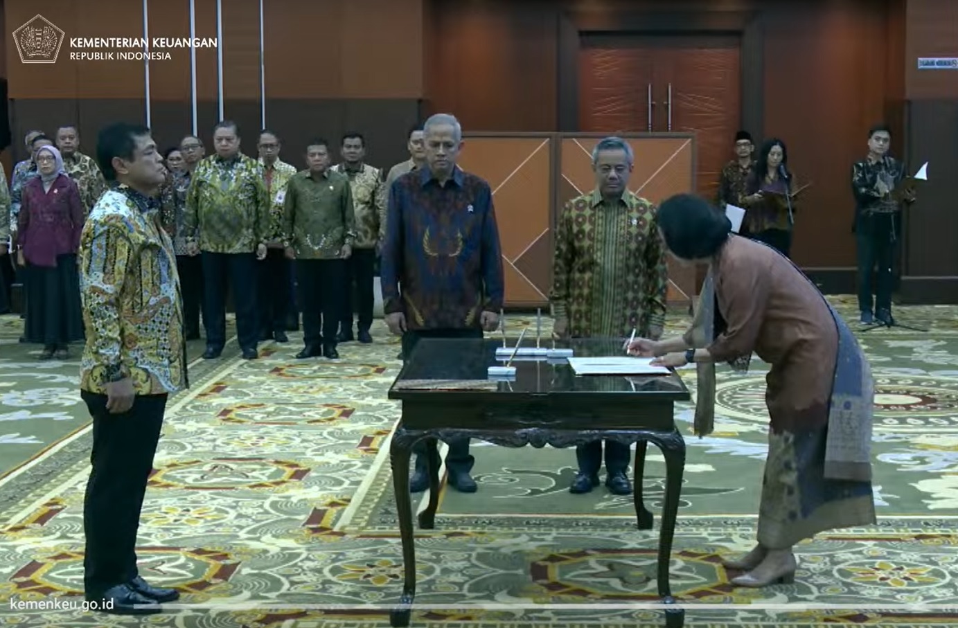 Sri Mulyani resmi melantik Bimo dan Djaka sebagai dirjen baru di Kementerian Keuangan (Kemenkeu), hari ini, Jumat (23/5/2025).