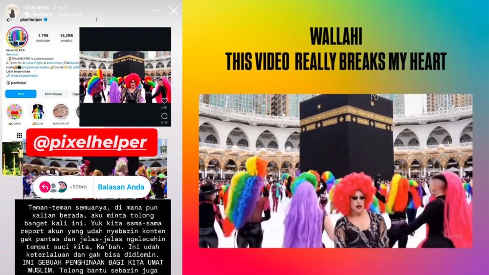Viral Video Kakbah Diedit dengan Simbol LGBT sebagai Penistaan Agama, Netizen Laporkan Akun Pixelhelper!