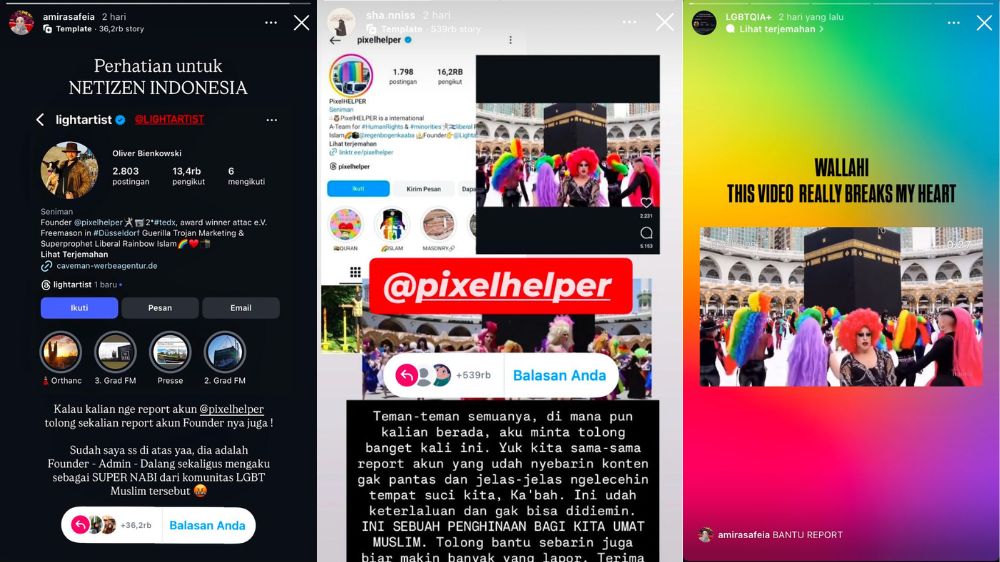 mereka berbondong-bondong melaporkan konten dan akun tersebut ke pihak instagram agar segera dihapus karena dinilai menghina keyakinan umat muslim.