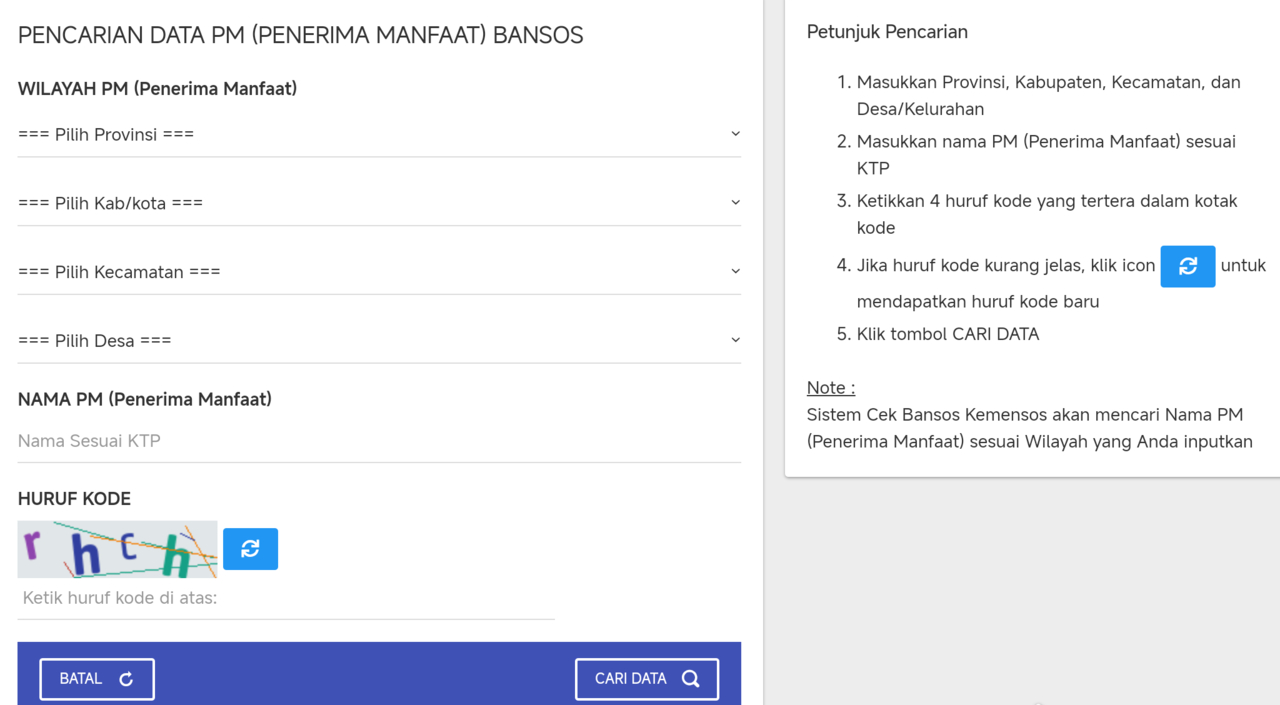Pencarian Data Penerima Manfaat Bansos 2025--Tangkap Layar/cekbansos.kemensos.go.id