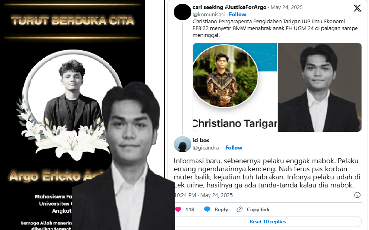 maut ini terjadi pada dini hari, 24 mei 2025, netizen ramai menuntut keadilan untuk argo dengan tagar #justiceforargo.