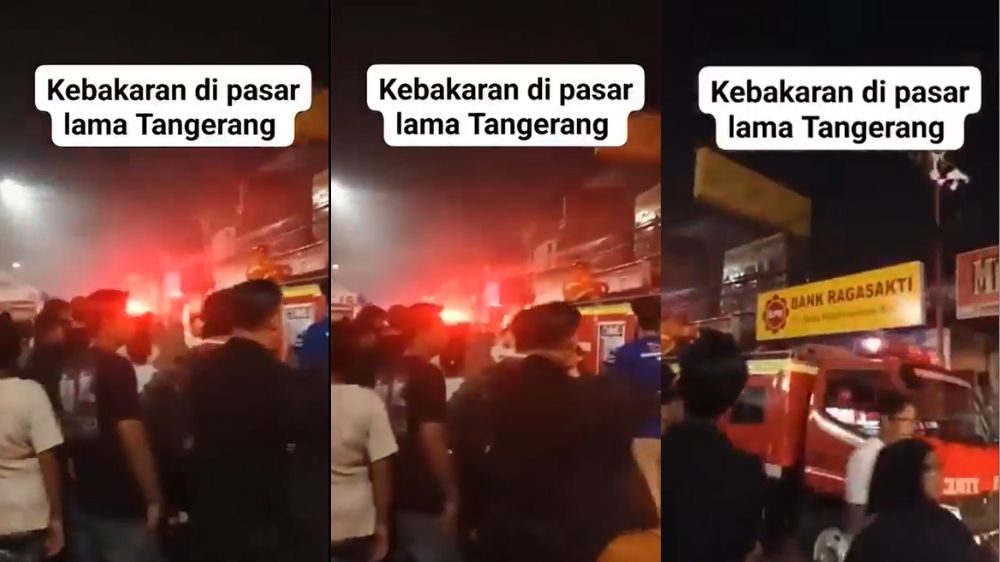 Kebakaran rumah makan Ayam Taliwang di Pasar Lama Tangerang melukai 3 orang/Kolase Bacakoran.co--X @bacottetanggaid