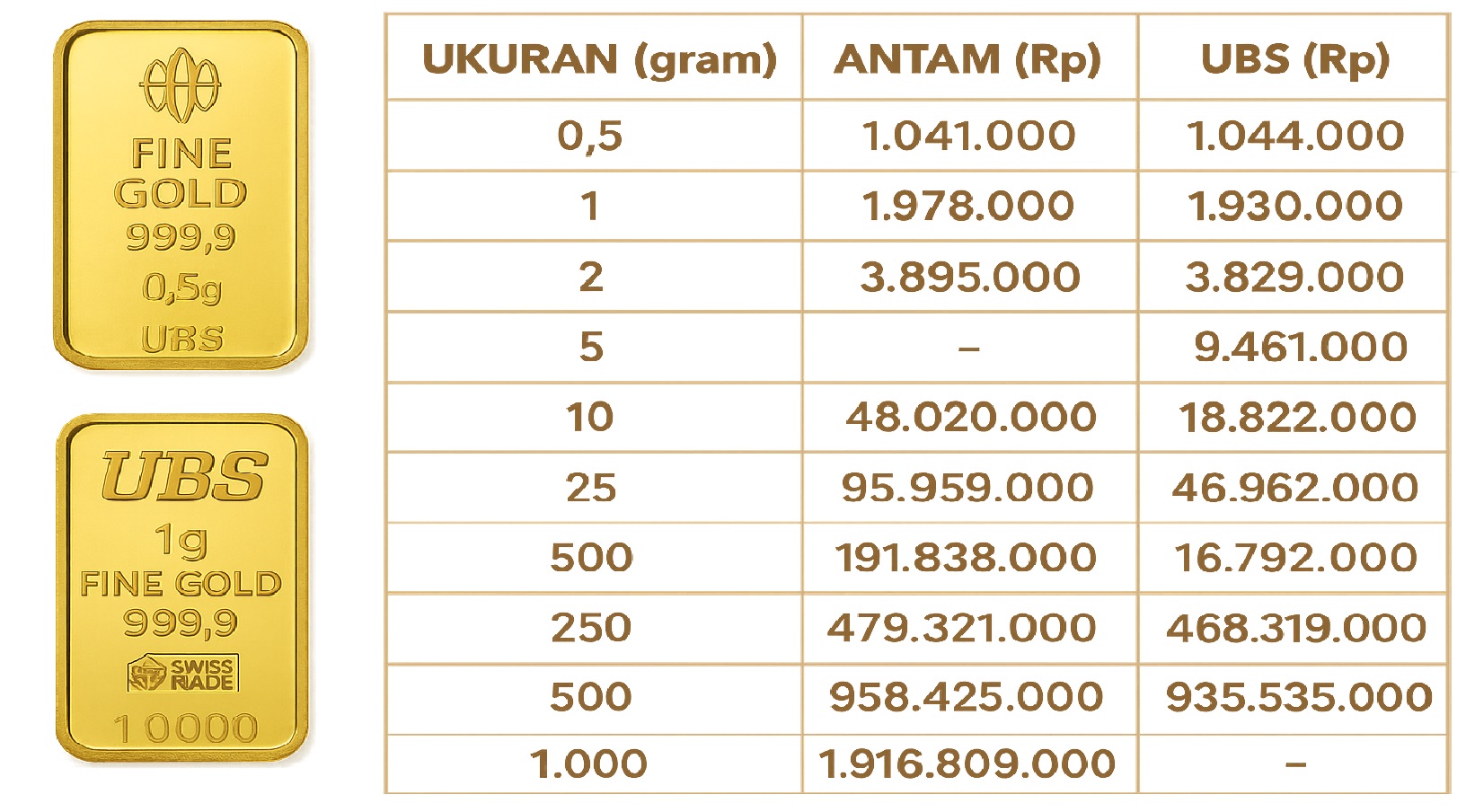 Berdasarkan laman resmi Pegadaian, berikut daftar harga terkini untuk emas Antam dan UBS: