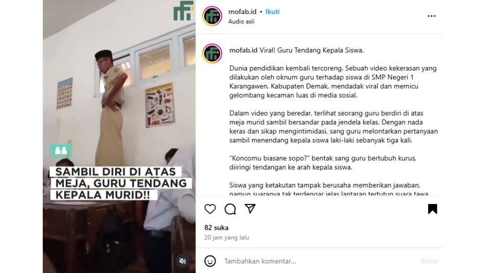 oknum guru smp negeri 1 karangawen terekam menendang murid saat ujian--tangkapan layar bacakoran.co/instagram @mofab.id