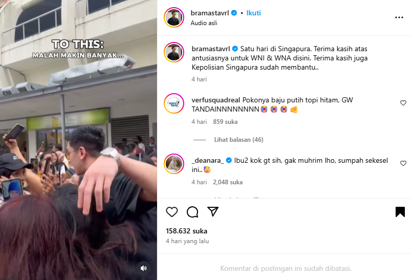Verrel Bramasta dikerubungi wanita saat liburan di Singapura--Tangkapan Layar Bacakoran.co/Instagram @bramastavrl