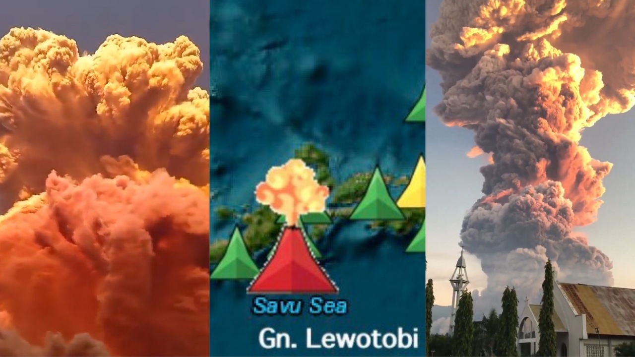 Erupsi Gunung Lewotobi Laki-laki mencapai sekitar 10.000 meter setara dengan 11.584 meter dari permukaan laut pada 17 juni 2025.--Kolase X @shintaeffendi/@NoticieroSLV