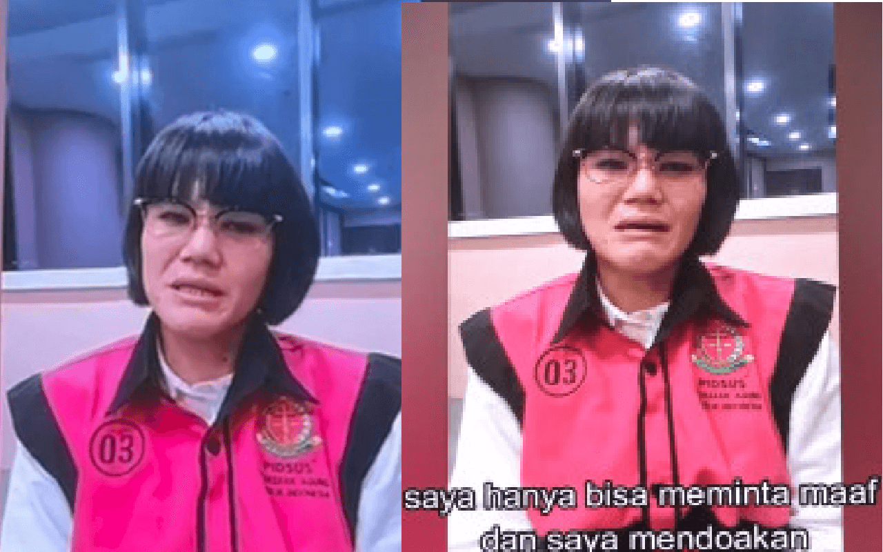 Dalam video viral tersebut menunjukkan Marcella Santoso, yang mengenakan rompi tahanan Kejaksaan Agung, meminta maaf atas perbuatannya.