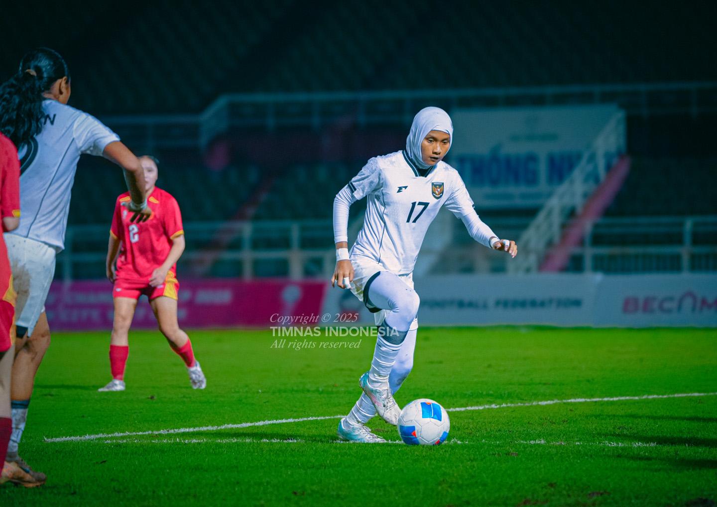 Sayangnya, tembakannya masih bisa ditepis. Serangan pun terus dibangun oleh pemain Timnas Putri U19.