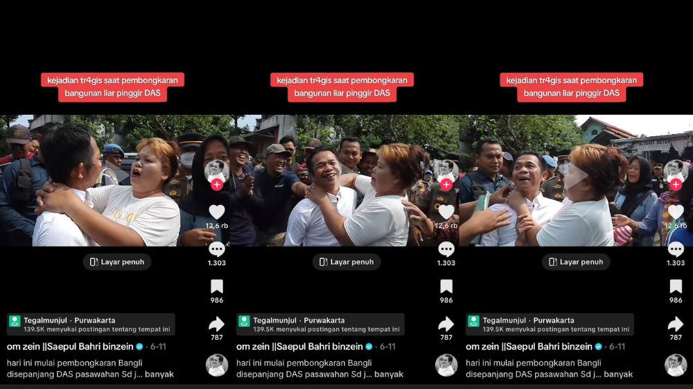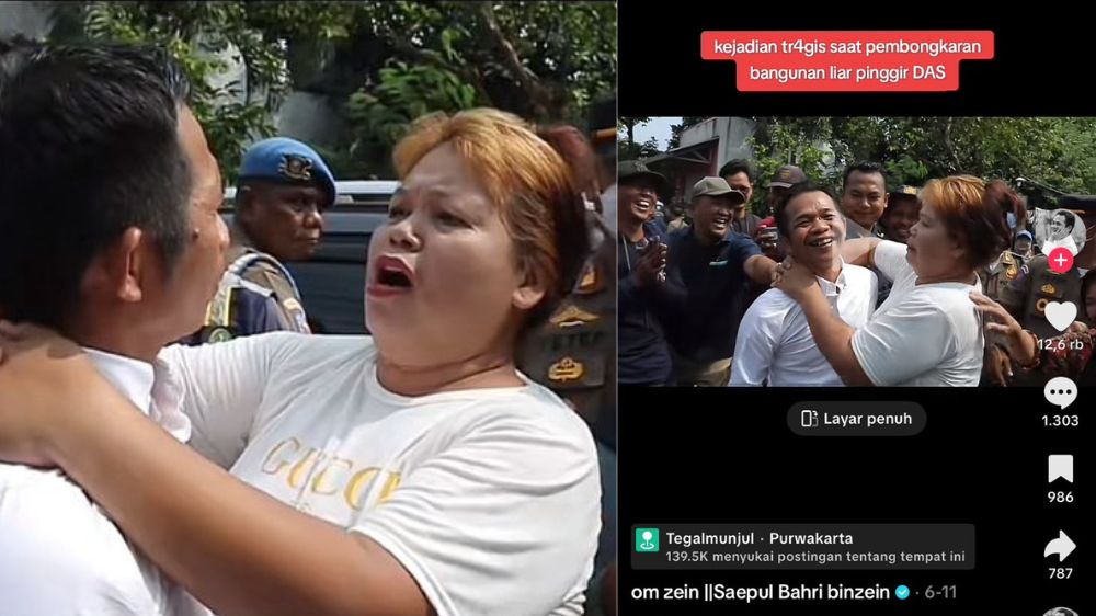 Video viral Bupati Purwakarta dicium ibu-ibu rambut pirang saat sosialisasi pembongkaran bangli di DAS Pasawahan/Kolase Bacakoran.co--Tiktok @omzein_bupatiaing
