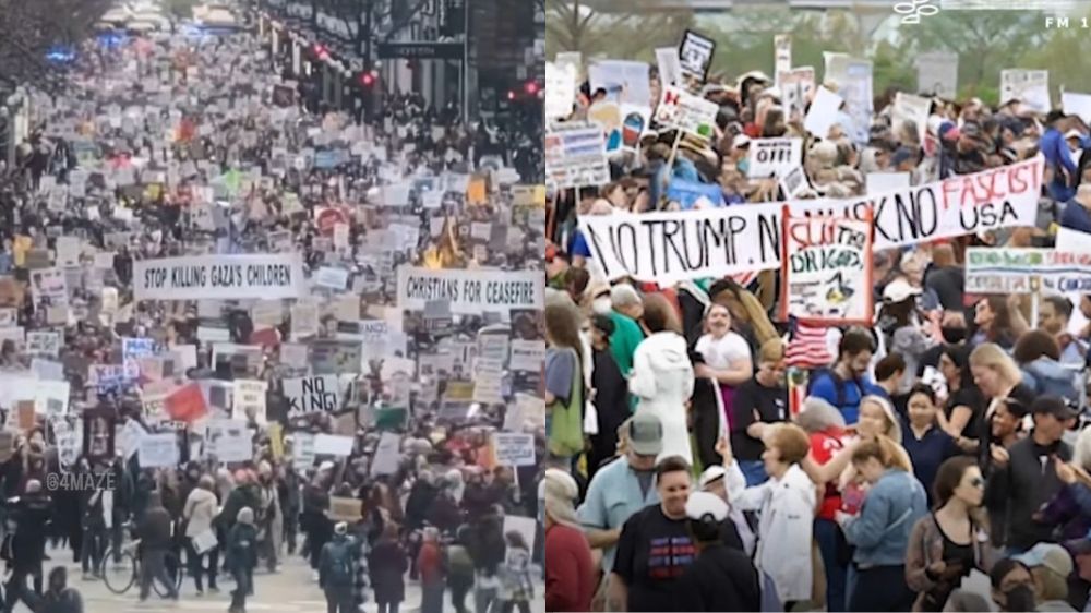 Warga AS gelar demo besar-besaran tolak keputusan Trump ikut campur konflik Iran-Israel, serukan diplomasi dan dana publik untuk rakyat/Kolase Bacakoran.co--Instagram @medsoszone.id