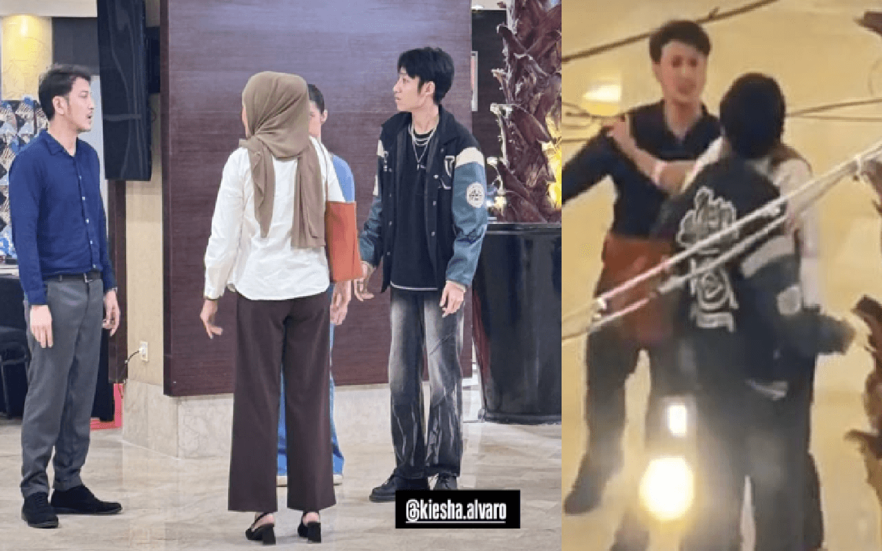 video viral tersebut terjadi dimas anggara menendang kiesha alvaro, putra saat syuting di .