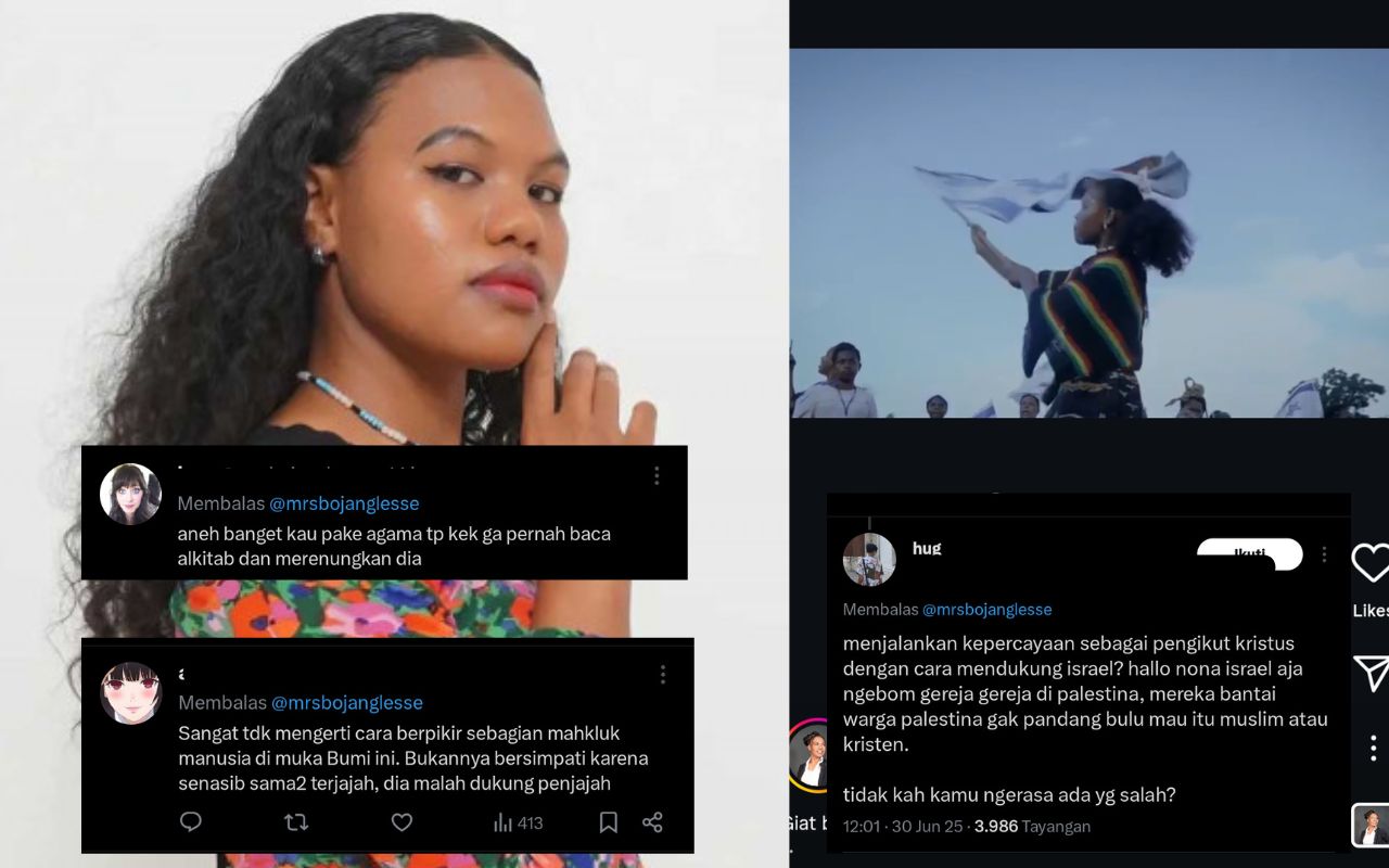 "miss girl. ure from papua. ure oppressed. how can u support the oppressor? “menjalankan kepercayaan sebagai pengikut Kristus” girl the jews you’re supporting is probably from brooklyn not bangsa pilihan Allah" ungkap kesal akun X @mrs*****, yang merepost pernyataan bahwa Kogoya Merince didepak dari Miss Indonesia 2025.