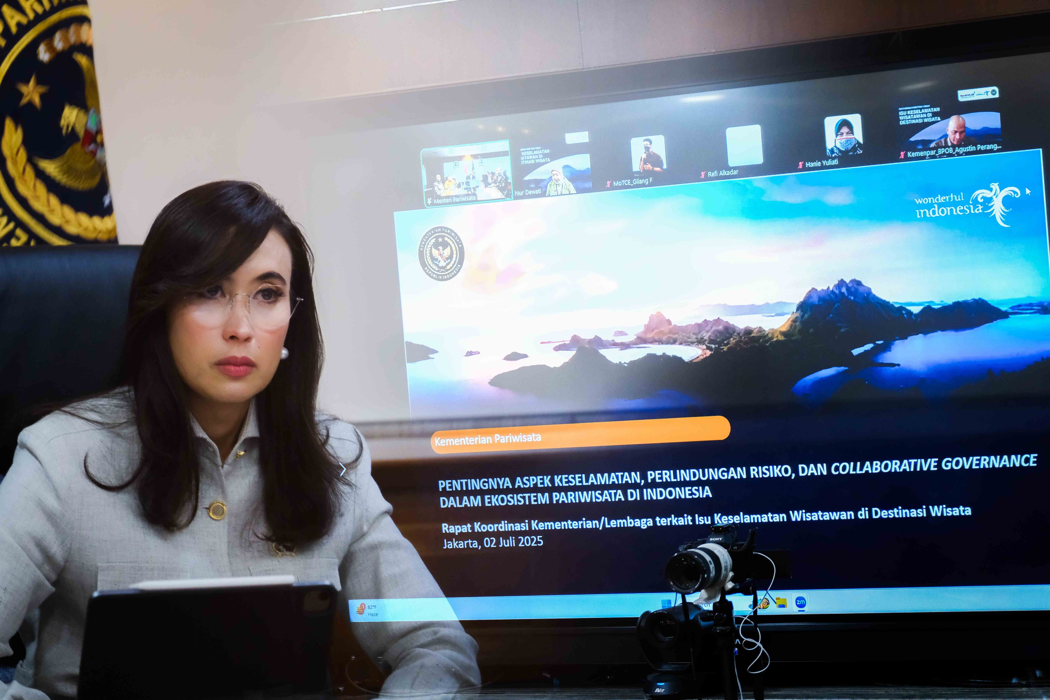 Menteri Pariwisata Widiyanti menegaskan bahwa keselamatan wisatawan adalah isu lintas sektor yang membutuhkan perhatian dan aksi bersama. Ini sebagaimana ditekankan Menteri Pariwisata saat “Rapat Koordinasi K/L Terkait Isu Keselamatan Wisatawan di Destinasi Wisata" secara daring, Rabu (2/7/2025).