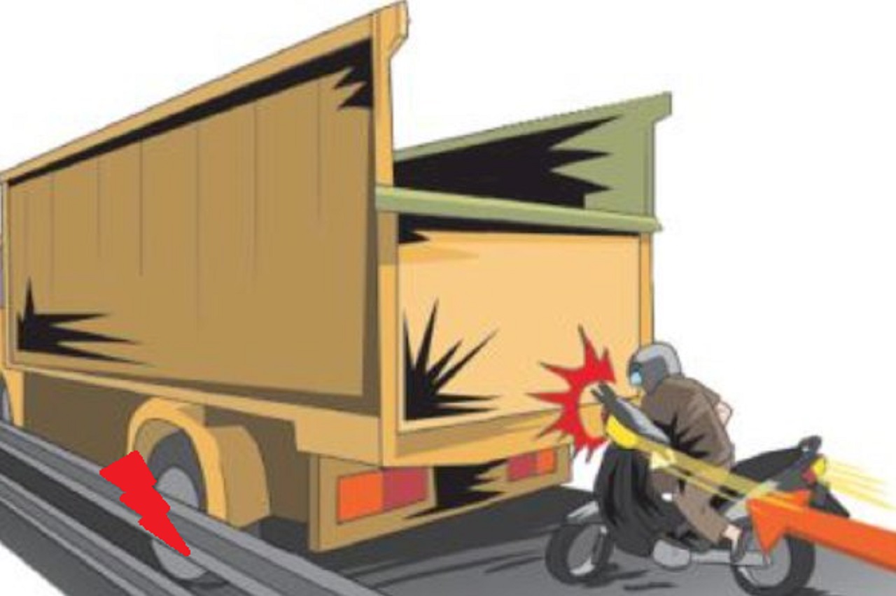 Sepeda motor yang di kemudikannya menabrak dum truk bermuatan batu yang saat itu pecah ban secara tiba-tiba. Saat kejadian, mobil dum truk di kemudikan Eka Kusuma, warga setempat.