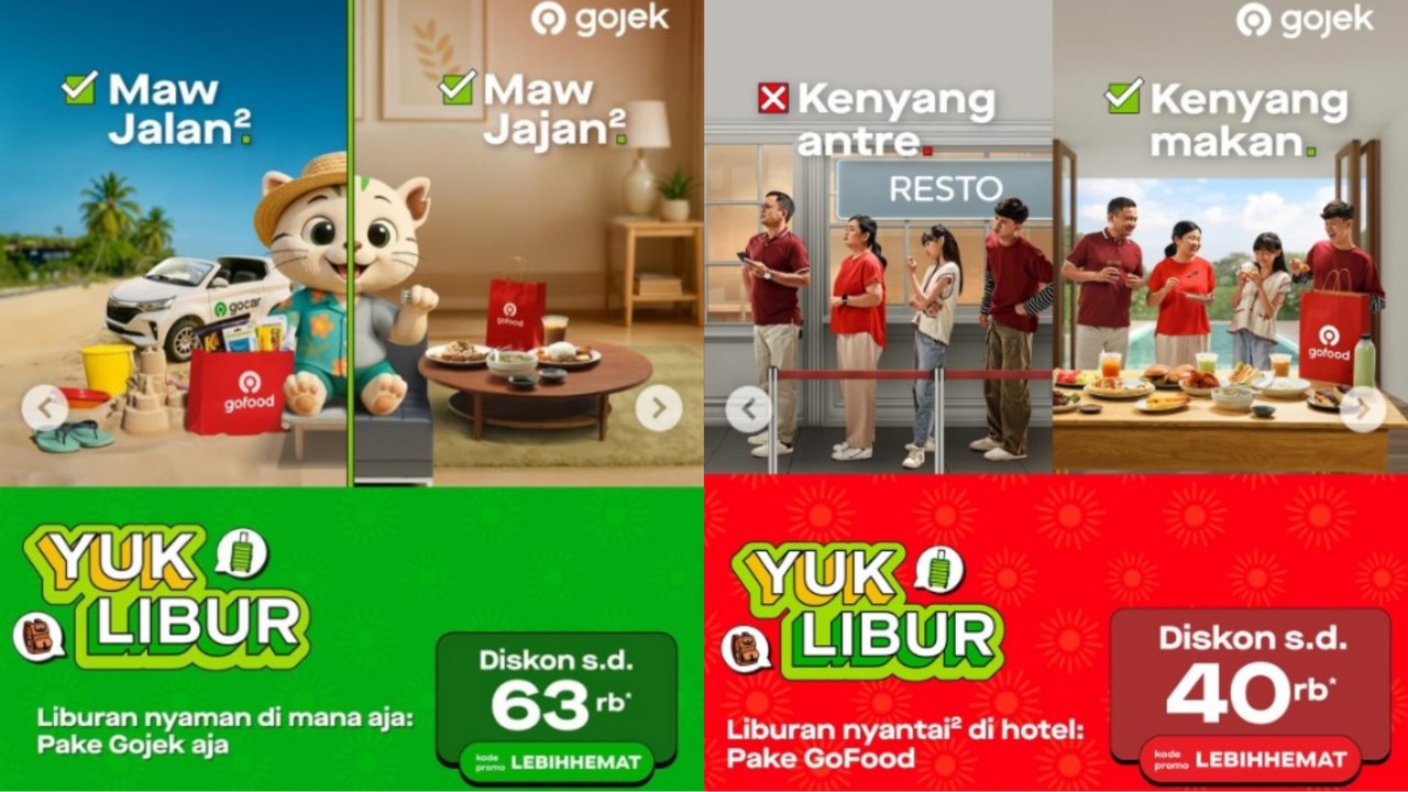 booking gocar irit 20% hingga rp 300.000 pakai kode promosi gojek bandara jakarta, bali dan surabaya 20% hingga rp 40.000 berakhir 31/12/2025.