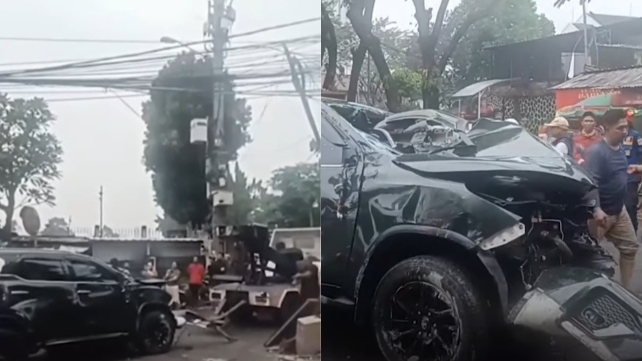 Kecelakaan tunggal terjadi di TPU Jeruk Purut, Jakarta Selatan, saat sebuah mobil menabrak gapura dan terguling. Tiga orang mengalami luka-luka dan langsung dilarikan ke rumah sakit.--Youtube-tvObenewscom