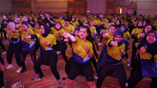 di palembang, misalnya, masyarakat diajak ikut kelas strong poundfit, les mills body combat, hingga diskusi bersama pakar olahraga seperti dr. andhika respati.