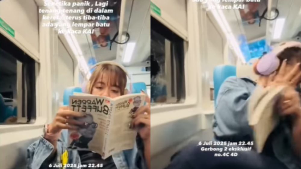 “Seketika panik, lagi tenang-tenang di dalam kereta, terus tiba-tiba ada yang lempar batu ke kaca KAI. 6 Juli 2025 jam 22.45. Gerbong 2 eksklusif no 4C 4D,” ungkap Widya dalam caption postingannya.