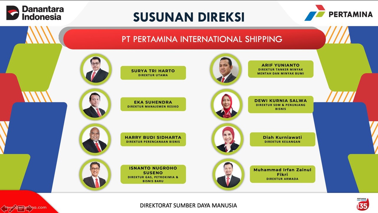 Berikut adalah detail lengkap susunan terbaru jajaran direksi dan komisaris Pertamina International Shipping (PIS).
