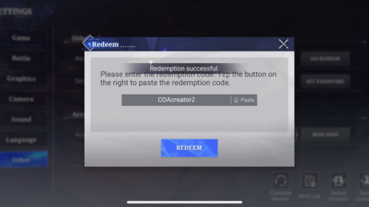 klik “go redeem” dan masukkan kode yang sudah kamu salin dari daftar di atas, atau kamu juga bisa tekan tombol tempel untuk langsung menyalin kode dari clipboard.