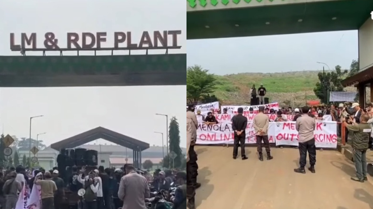 Aksi ratusan warga Bantargebang geruduk fasilitas RDF milik Pemprov DKI Jakarta menuntut prioritas tenaga kerja lokal.--Youtube-tvOneNews