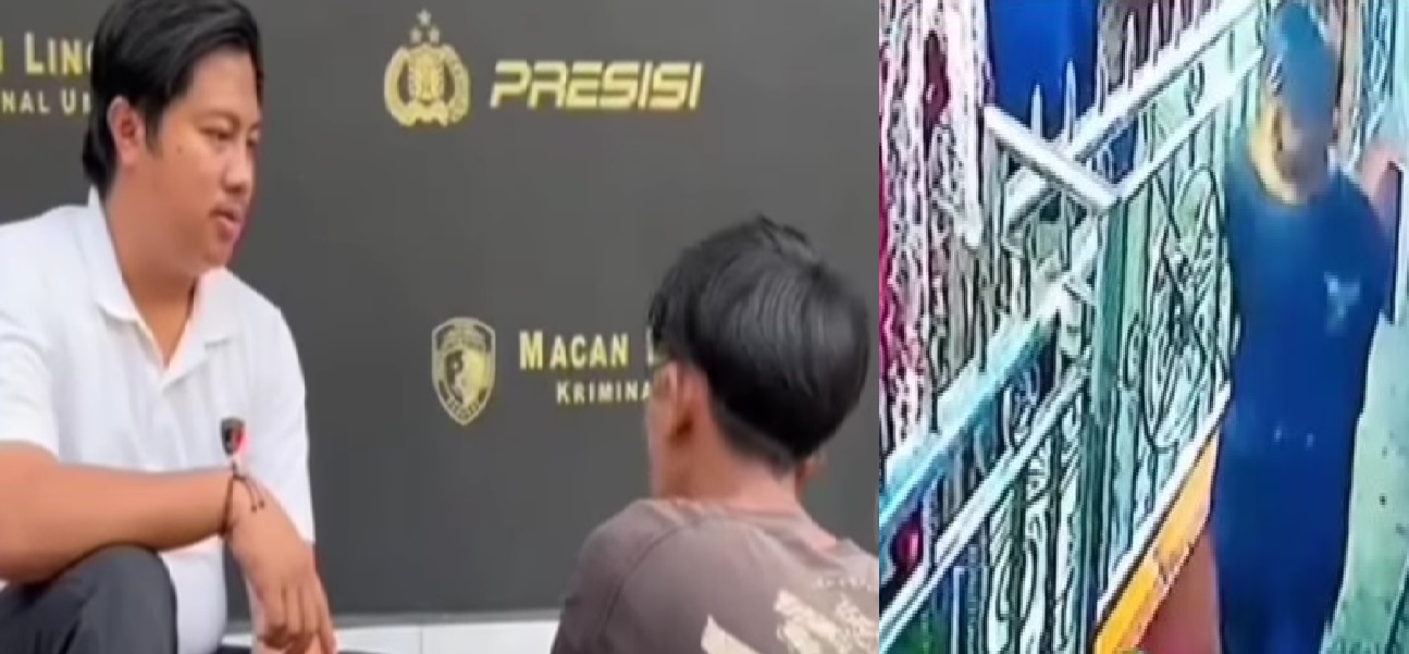 Tersangka A tengah diiterogasi petugas. Tampak saat pelaku henda mencuri meteran PDAM di depan rumah warga. (foto: screenshoot)--