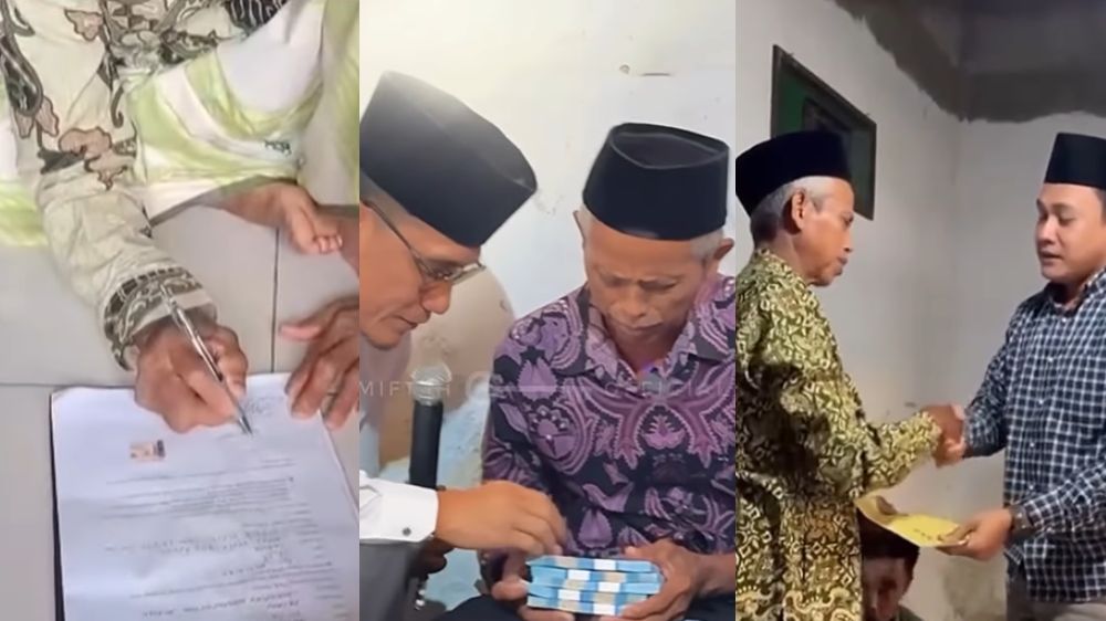 Guru Madin Ahmad Zuhdi dapat motor dan hadiah umroh usai viral dituntut Rp25 juta oleh wali murid/Kolase Bacakoran.co--Instagram @fakta.indo