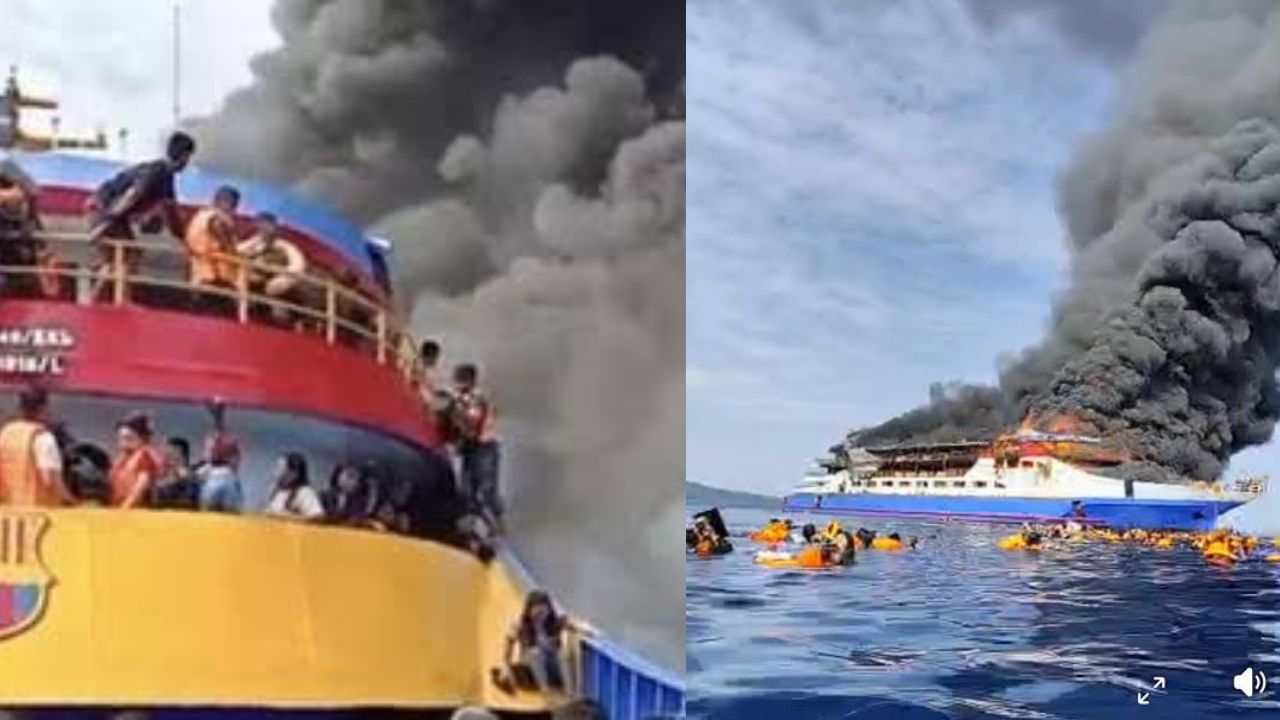 Kapal KM Barcelona V Terbakar: Ibu Hamil Meninggal, Puluhan Penumpang Lompat ke Laut!