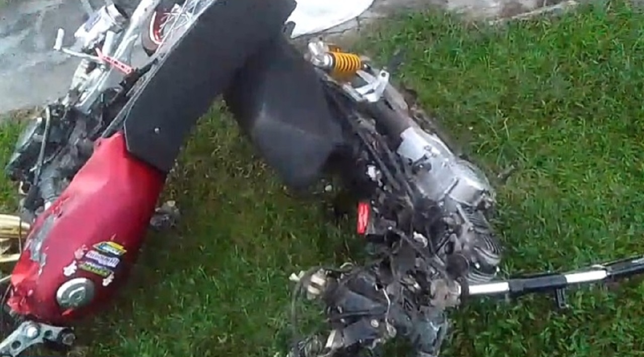 Tak jauh dari tubuh keduanya juga di temukan 2 sepeda motor yang sudah di modifikasi alias tidak standar pabrikan dalam kondisi yang rusak berat.