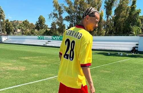 Jersey tersebut berwarna kuning dengan nama Gerrard dan nomor punggung 28 yang pernah dipakai Gerrard pada musim 1997-1998. Foto tersebut diambil saat Ekitike latihan di Marbella Football Centre bulan Juni 2025 lalu.
