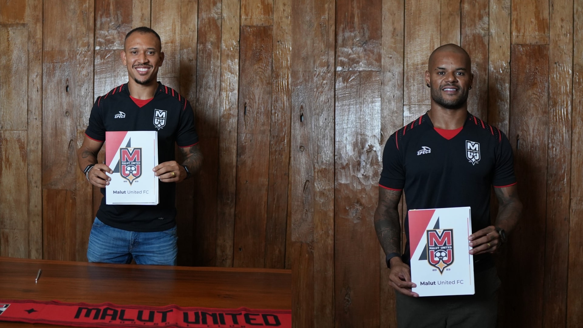 David da Silva ketika diperkenalkan dengan Gustavo Franca sebagai pemain baru Malut United. Di Malut United, David akan kembali berduet dengan Ciro Alves yang sudha direkrut lebih dulu. -malut united-