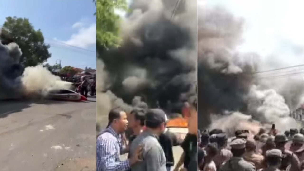ketegangan memuncak ketika massa membakar perahu dan merusak mobil pemadam kebakaran yang datang ke lokasi.