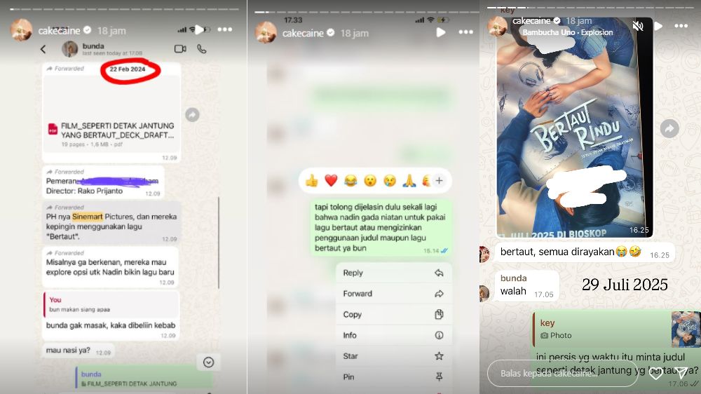 Nadin menolak untuk menggunakan lagu atau judul tersebut dalam proyek film apapun./kolase Bacakoran.co--Instagram @cakecaine