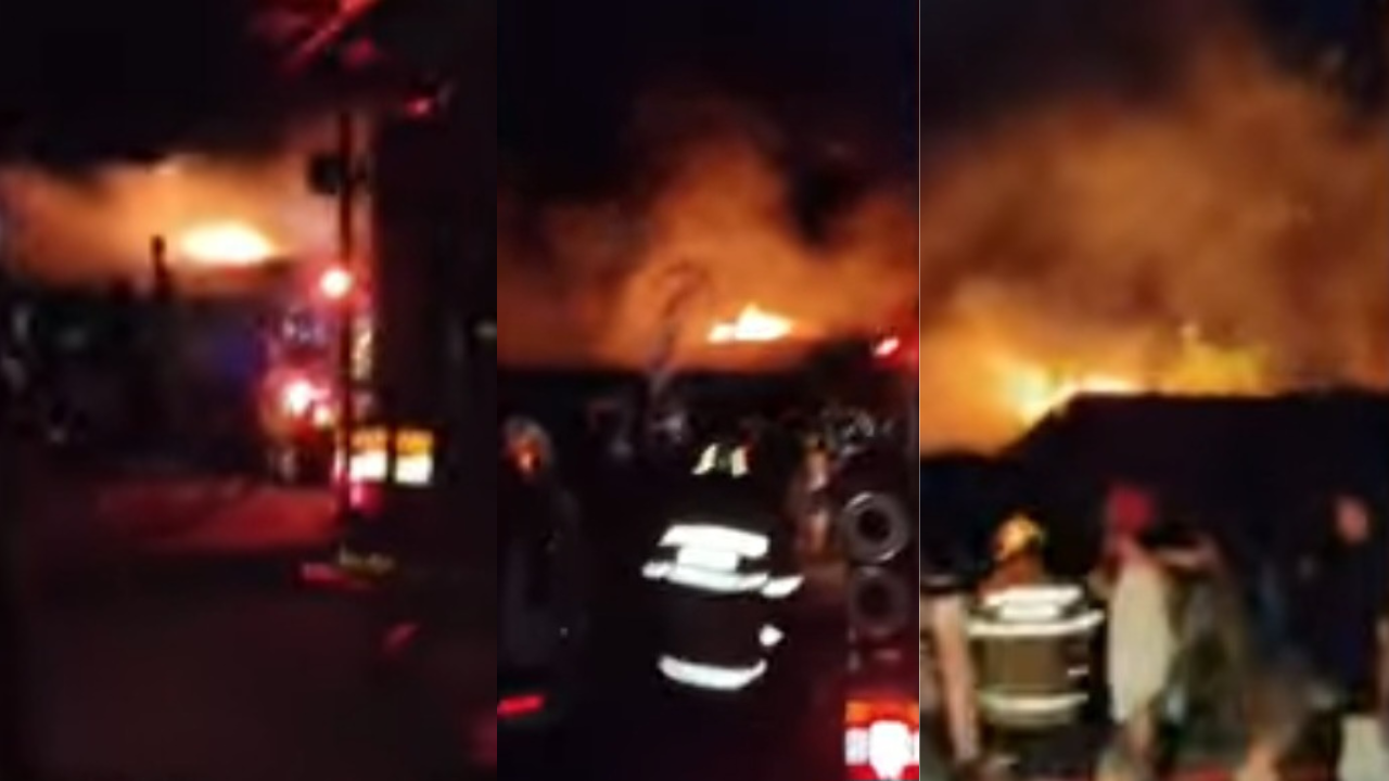 Video amatir yang beredar di media sosial menunjukkan detik-detik dramatis saat api melalap bangunan dan warga berusaha memadamkan api dengan alat seadanya.