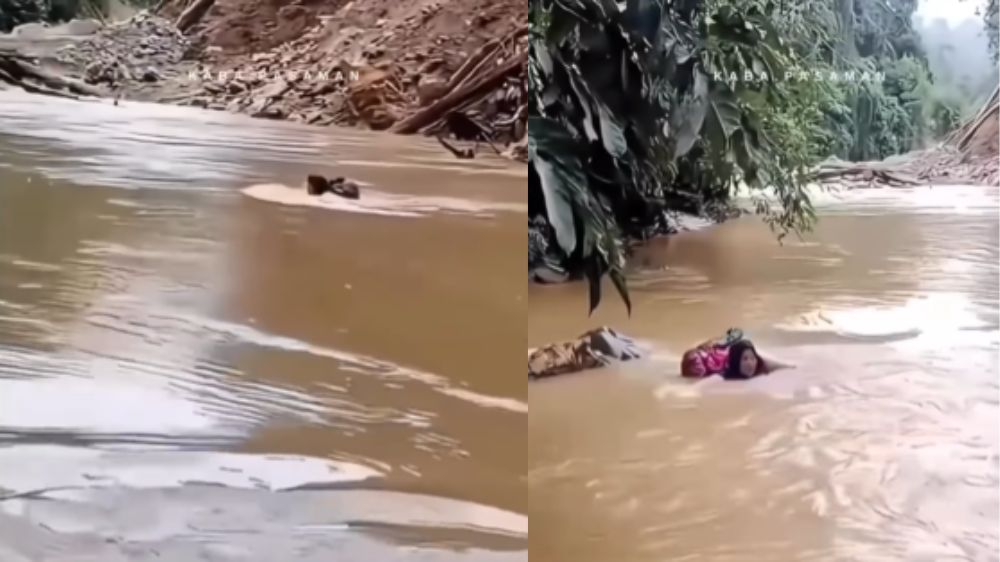 Dalam rekaman singkat tersebut, seorang wanita berhijab terlihat berjuang keras menyeberangi sungai berarus deras demi mengunjungi warga yang sedang sakit di Jorong Sinuangon, Nagari Batang Kundur, Kecamatan Dua Koto, Kabupaten Pasaman.