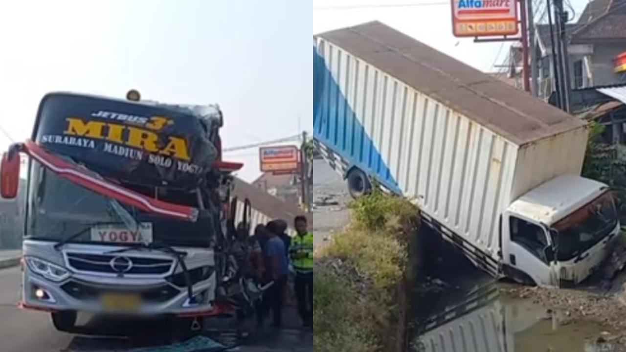 Bus Antarprovinsi Ugal-Ugalan Tabrak Truk di Jombang, Kondisi Ringsek Parah!