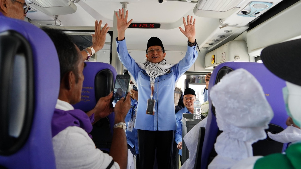 Menag Nasaruddin Umar ketika menyapa jamaah haji -kemenag-