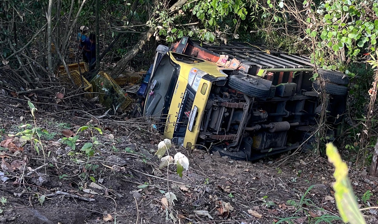 BACAKORAN.CO -- Sebuah truk yang mengangkut ribuan ekor ayam merah bernomor polisi  BG 8697 EH yang di kemudikan Gunadi,  Selasa pagi 5 Agustus 2025 terguling hingga masuk ke dalam jurang.