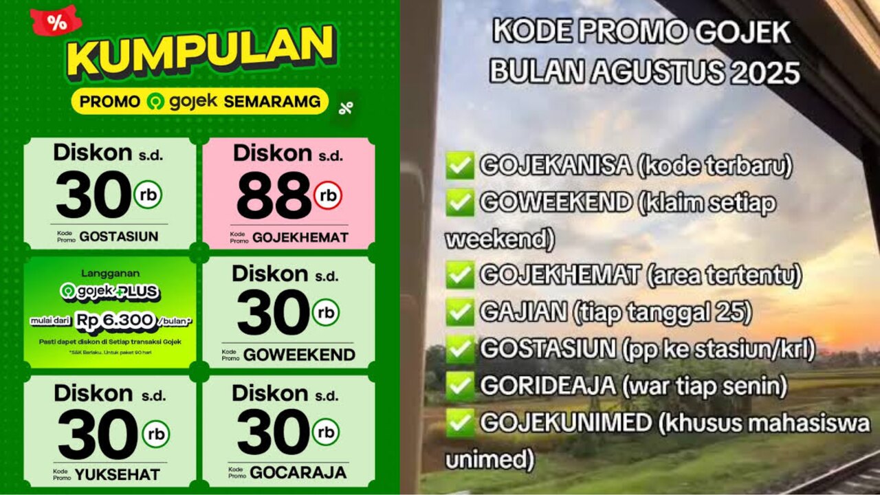 booking gocar irit 20% hingga rp 300.000 pakai kode promosi gojek bandara jakarta, bali dan surabaya 20% hingga rp 40.000 berakhir 31/12/2025.
